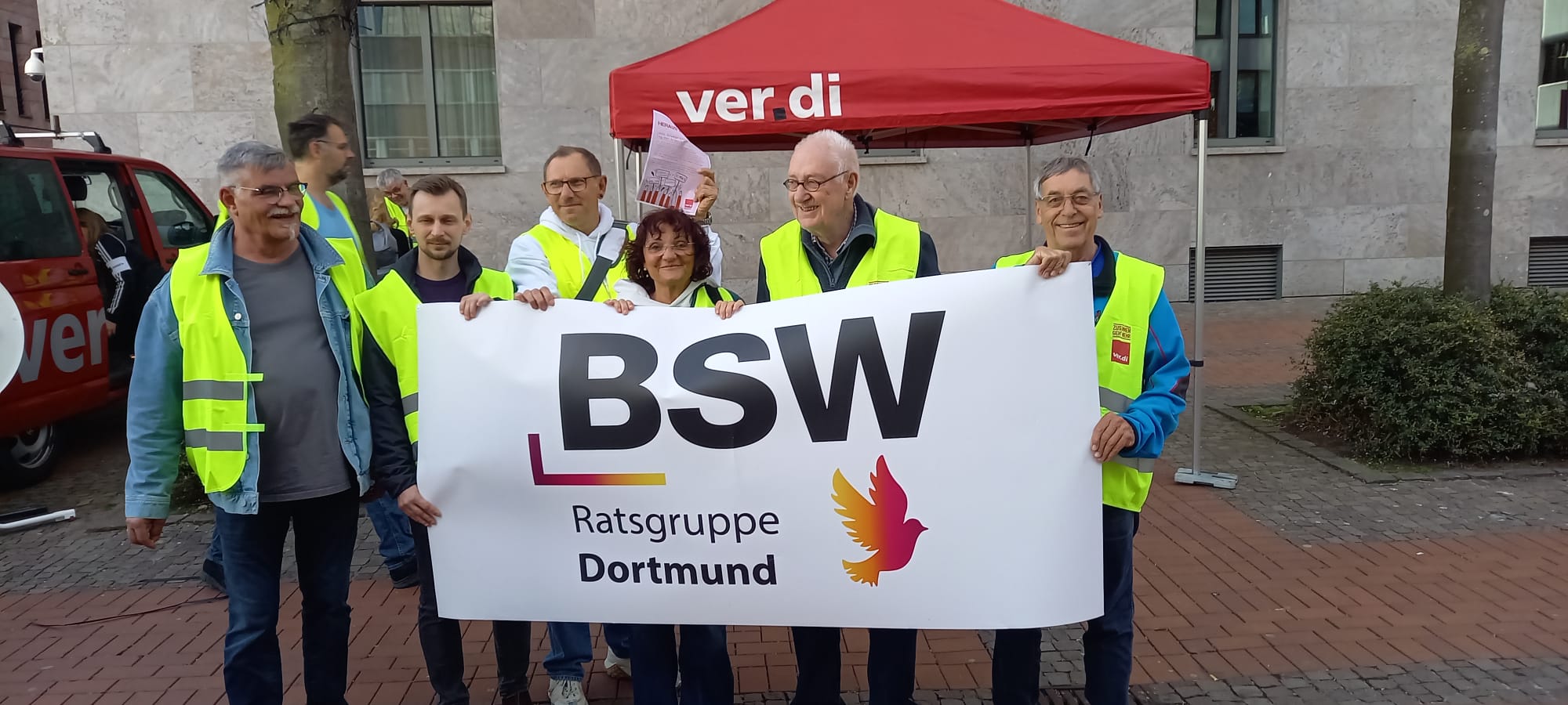 Mitglieder und Unterstützer von Kreisverband und Gruppe zeigten sich heute solidarisch mit dem verdi Bezirk Westfalen.